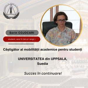 Facultatea de Istorie și Filosofie adresează cele mai sincere felicitări studentului Sorin Cojocari, anul II (Istorie și Engleză), pentru obținerea mobilității academice prin intermediul programului Erasmus+ pe perioada anului academic 2025-2026, la prestigioasa Universitate din Uppsala, Suedia.